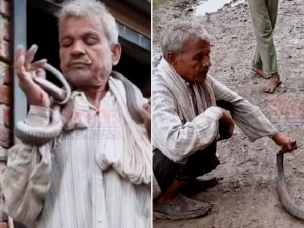 Objavljen je strašan snimak na kome se vidi momenat kada je stručnjak za zmije iz Indije Pama Ahirvar pokušao da zarobi smrtonostnu crnu kobru u selu na severu zemlje.