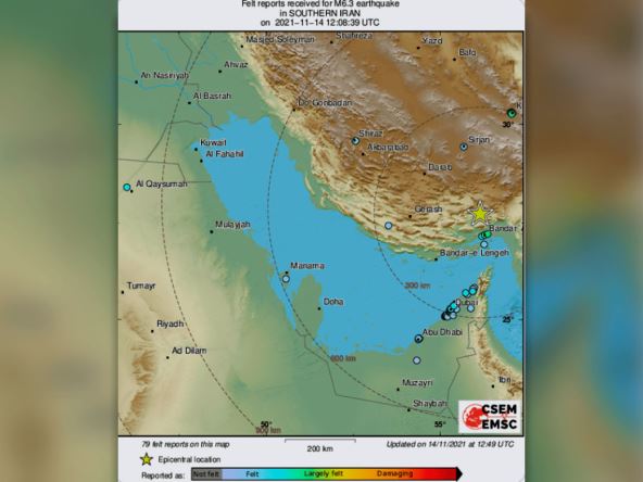 Epicentar je bio na 68 kilometara od grada Bandar Abas.