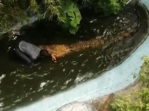 Turistu je napao krokodil u zabavnom parku. Čovek je ušao u bazen gmizavaca da napravi selfi, misleći da je životinja vrlo realistično napravljen plastični model.