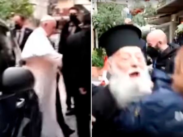 Nesvakidašnja scena zabeležena je u Atini, kada je stariji pravoslavni sveštenik, tokom ulaska Pape Franje u pravosavni hram počeo da viče: "Papo, ti si jeretik".
