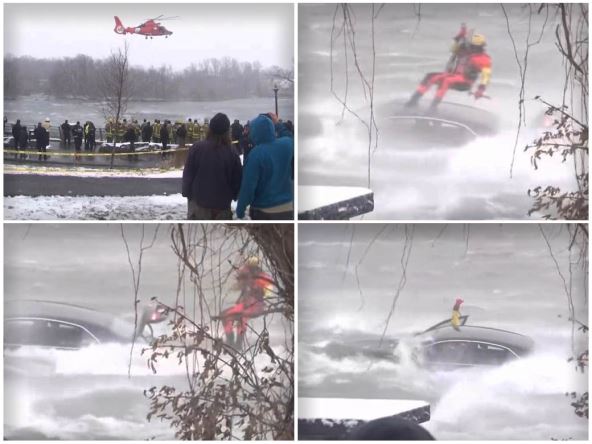 Američka obalska straža Velikih jezera objavila je na Tviteru da je helikopterom izvukla ženu sa vozačevog sedišta vozila, a ona je proglašena mrtvom na licu mesta.