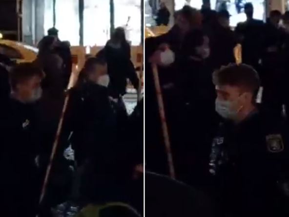 Međutim, pažnju na skupu posebno su privukli policajci, koji su ogromnim lenjirima merili razmak između okupljenih ljudi.