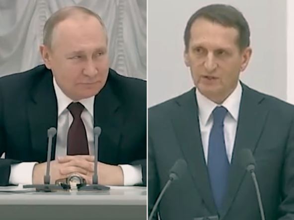 Na red je došao Sergej Nariškin, šef ruske obaveštajne službe, koji je sugerisao korišćenje priznanja separatista kao pritisak na Ukrajinu da se drži sporazuma iz Minska. Nakon toga razgovor je, prema rečima šefa moskovskog dopisništva Fajnenšel tajmsa Maksa Sedona, postao neverovatan.