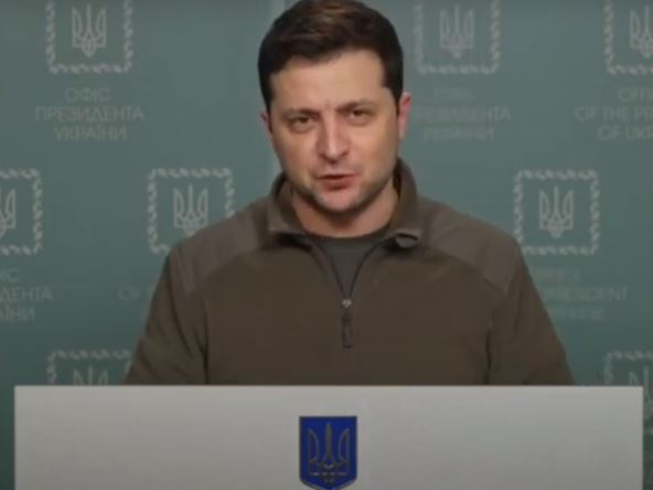 "Danas je bio težak, ali hrabar dan. Borimo se za našu državu na mnogim frontovima: na jugu, istoku, severu - u mnogim gradovima naše prelepe zemlje. Ovo će biti najteža noć. Neprijatelj će napasti punom snagom. Moramo da izdržimo. Noć će biti veoma teška, ali jutro će doći. Noć će biti teža nego juče". On je rekao da su mnogi gradovi u Ukrajini na udaru, Černihiv, Sumi, Harkov. i dodao: