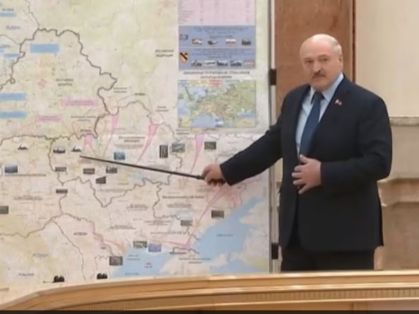 Izgleda da je beloruski predsednik Aleksandar Lukašenko nagovestio da snage Vladimira Putina planiraju invaziju na Moldaviju. Dok se Lukašenko juče obraćao zvaničnicima bezbednosti stajao je ispred borbene mape koja izgleda da prikazuje planiranu operaciju ka ukrajinskom susedu, navodi Daily Mail.