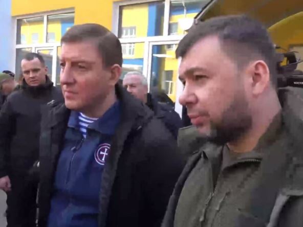 U video snimku koji je objavilo "ministarstvo informisanja" oblasti Donjeck prikazuje se Denis Pušilin u poseti centru za humanitarnu pomoć koji drži ruska vojska postavljen u hangaru, i desetine civila kako dobijaju prehrambene proizvode. Agencija Frans pres navodi da za sada nije bilo moguće proveriti tačnost tog izveštaja.
