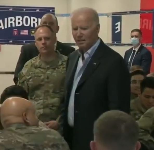"Hvala vam puno na onome što radite, najbolji ste, i ovo nije preterivanje. Najbolji ste i borite se za nas u svetskoj istoriji", rekao je Bajden u trpezariji u kojoj su se okupili američki vojnici.
