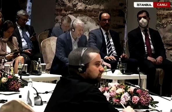 Na pregovorima se pojavio i nekadašnji vlasnik Čelsija Roman Abramovič za koga su juče mediji preneli da je otrovan tokom prethodnih pregovora. Na slikama koje prenose turski mediji vidi se da sedi za stolom pored Ibrahima Kalina - portparola predsednika Erdogana, i nosi slušalice za prevođenje. On ne sedi za glavnim stolom ruske i ukrajinske delegacije.
