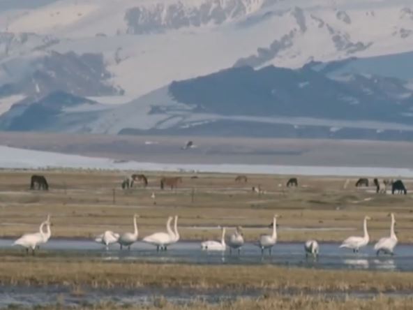 Ovde je najveće rasplodno mesto labudova i zove se Labudovo jezero. Oko desetak hiljada divljih labudova leti u Bajanbulak u proleće, a napušta ga u oktobru ili novembru.