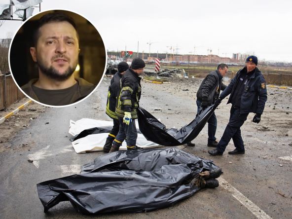 Ukrajinski predsednik Volodimir Zelenski izjavio je da Rusija sprovodi genocid u Ukrajini, nakon fotografija ubijenih civila u Buči, severozapadno od Kijeva. Govoreći za CBS Njuz, Zelenski je opisao rusku invaziju kao "mučenje cele nacije".