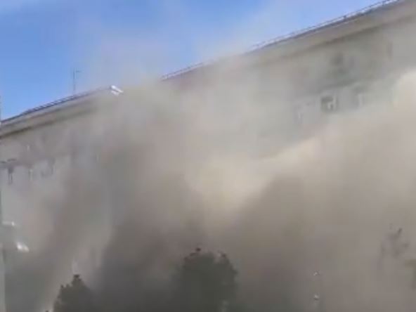 Požar je buknuo ispred paviljona gradonačelnikove kancelarije, javlja "Russia Today."