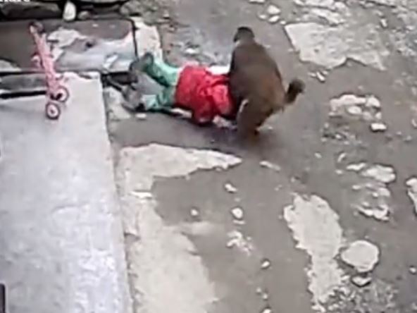 Na snimku se vidi kako se majmun prišunjao devojčici dok se igrala na ulici, bacajući je na zemlju pre nego što je pokušao da je odvuče. Na sreću, na vreme ju je spasio prolaznik, piše The Sun.