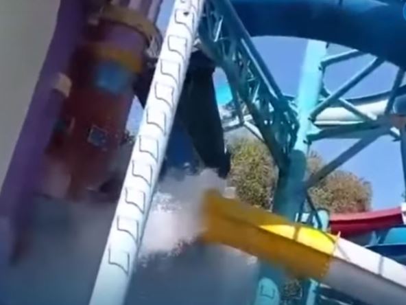 Odmor u akva parku se pretvorio u noćnu moru nakon što se ogroman vodeni tobogan prepolovio i srušio na zemlju. Zarobljeni unutra pali su sa 10 metara na zemlju u parku Kenjeran u Surabaji u Indoneziji.