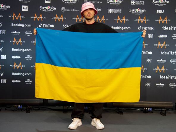 Oleg Psijuk, frontmen folk-rep grupe koja je pobedila na Evroviziji, fotografisan je u nedelju u zagrljaju sa devojkom Aleksandrom ispred hotela u Torinu u Italiji dok je odlazio da se pridruži ukrajinskim snagama u borbi protiv Rusije. Noseći prepoznatljivi ružičasti šešir i ruksak, Psijukove stvari su stavljene u taksi, odakle je otišao na aerodrom.