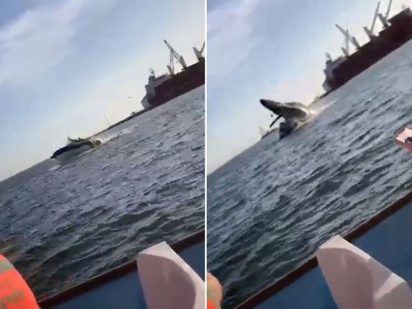 Na snimku se vidi kako ogroman kit iskače iz vode u Kalifornijskom zalivu, zatim dolazi do vrha turističkog broda. U nastavku se ne vidi šta se dalje dešavalo, osim što se čula vriska ljudi na brodu. Zatim se