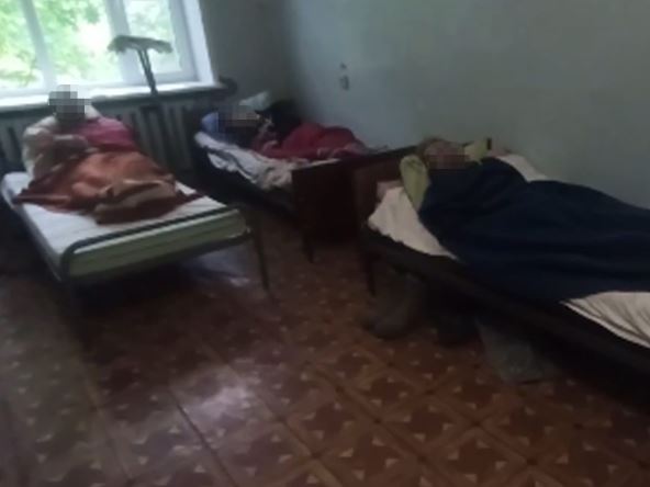 Na snimku se vide vidno izmučeni muškarci koji leže na krevetima na bolničkom odeljenju, umotani u ćebad. Mnogi od njih gledaju u prazno.