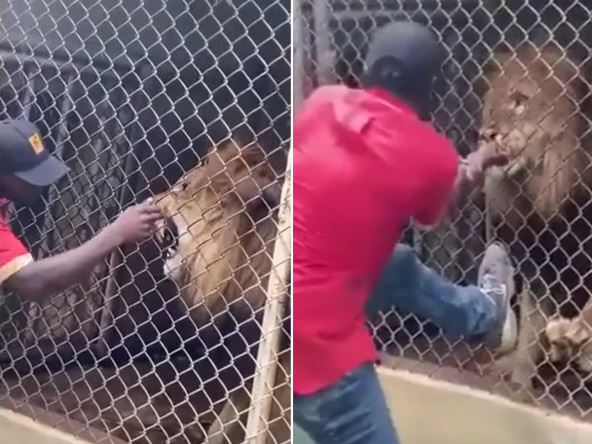 Međutim, u jednom trenutku se obistinila čuvena izreka "igračka - plačka", kada je lav bio brži od čoveka i ščepao njegovu ispruženu šaku. Na snimku se vidi kako je lav ugrizao čoveka za prste i što je najgore od svega - nije hteo da pusti! Nesrećni čovek je svim silama pokušao da izvuče ruku iz čeljusti lava, pa je nakon kratkotrajne borbe uspeo da se odvoji od kaveza - ali naizgleda sa minimum jednim prstom manje.