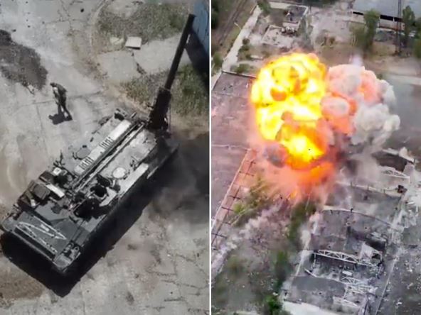Ogroman minobacač nestaje u ogromnoj vatrenoj kugli, nakon čega njegova municija dodatno detonira, vidi se na snimku. To je prvi potvrđeni ruski gubitak minobacača 2S4 od početka invazije, iako Kremlj navodno ima još 400 minobacačkih sistema u rezervi.