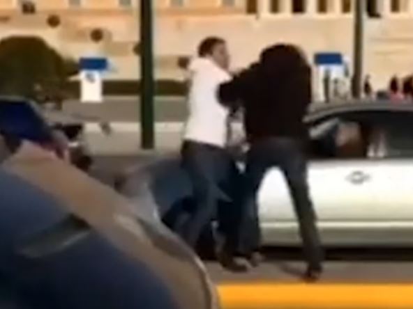 Muškarac je prišao vozilu iz kojeg se viorila srpska zastava i napao vozača. Vozač je izašao i uzvratio udarac napadaču, a onda je usledila prava tuča nasred puta. Na snimku se može videti da je napadnuti muškarac u borbi imao dobru tehniku i jak kroše, te je oborio svog napadača.