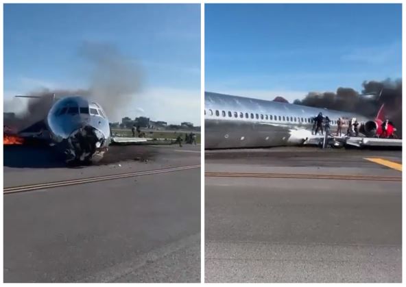 Avion sa 126 ljudi zapalio se nakon sletanja na aerodrom u Majamiju, prenosi "Skaj njuz". Avionu "Red Aira" otkazao je prednji stajni trap na letu iz Santo Dominga u Dominikanskoj Republici.