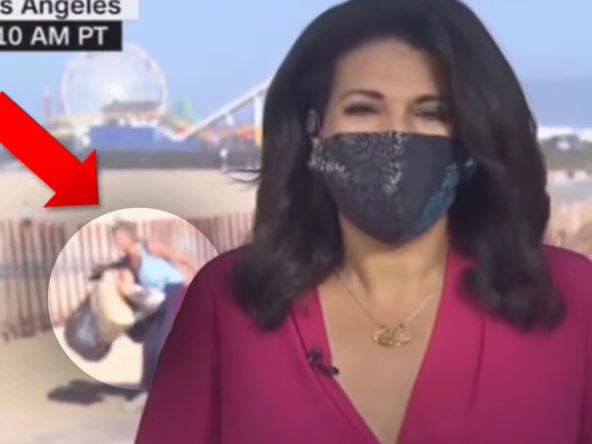 Kamerman CNN-a brzo je reagovao na neverovatne scene koje su se odvijale iza reporterke Sare Sidner dok je govorila uživo sa plaže u Los Anđelesu. Kamerman je promenio ugao kada je video šta se dešava u programu, a telo reporterke je prekrilo situaciju koja se odvijala iza njenih leđa. Snimak je nastao u avgustu 2020. godine.