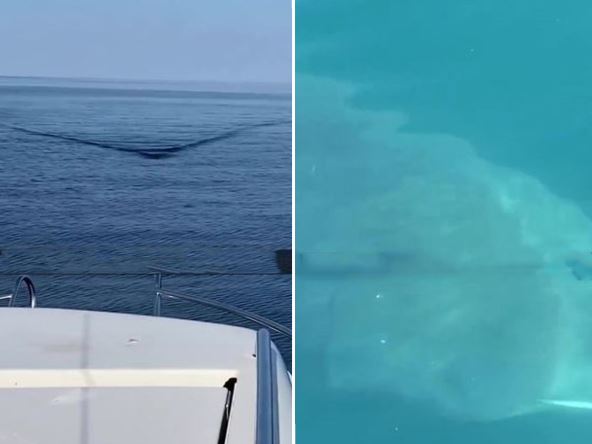 Preplašeni ljudi su uhvatili kamerom zastrašujući trenutak kada ogromna ajkula velika čak 7 metara pliva prema njihovom čamcu! Snimak, koji je postao viralan na društvenim mrežama, prikazuje momenat na koji je malo ko ostao ravnodušan. Na snimku se vidi voda koje počinje da talasa dok se ogromna ajkula približava čoveku.