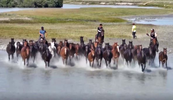 Konji piju vodu i kupaju se u reci, igraju se i trče, što je postalo jedna od najlepših predstava na pašnjaku.
