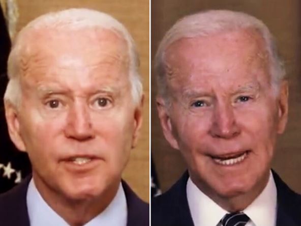 "Dva video snimka koja su objavljena u roku od nekoliko sati. Mislim... vi meni recite šta se ovde dešava", napisao je Skistimas i potom objavio snimak u kome se smenjuju kadrovi jednog i drugog snimka. "Obratite pažnju na njegov izgled i glas. Opet, oba snimka su napravljena danas, u roku od nekoliko sati. Šta se ovde dešava?" Motherboard tvrdi da Bajdenove oči na snimcima izgledaju drugačije i da, ako ste "spremni" da verujete, izgleda da prikazujudve različite verzije iste osobe.