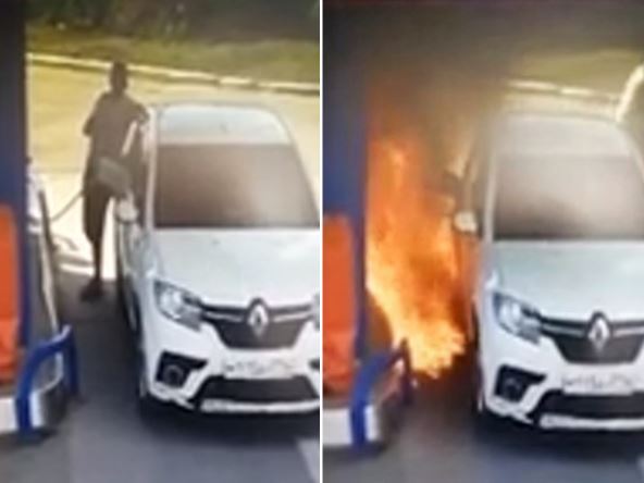 Bezbednosne kamere su uhvatile trenutak kada je jedan mladić počeo da gori nakon što je pripalio cigaretu dok je točio gorivo na benzinskoj pumpi. Na snimku koji je napravljen u Čeljabinsku, Rusija prikazuje čoveka sa cigarom u ustima koji vadi upaljač, dok je čekao da mu se rezervoar napuni gorivom, i kreće da pali cigaru. Sve je vrlo brzo pošlo naopako i samo nekoliko sekundi kasnije, izbio je ogroman plamen, a čovek je panično počeo da trči napred-nazad.