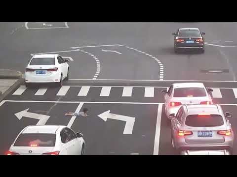 Na snimku se vidi velika raskrsnica sa četiri trake i mnogo vozila. Automobil se zaustavio na semaforu. Kada se upalilo zeleno svetlo, auto je krenuo, a dete se nagnulo kroz prozor i ispalo je na kolovoz! Auto je nastavio da se kreće, a vozači drugih automobila su momentalno zaustavili svoje automobile i izleteli da pomognu detetu koje je zbunjeno i bespomoćno ležalo nasred puta.