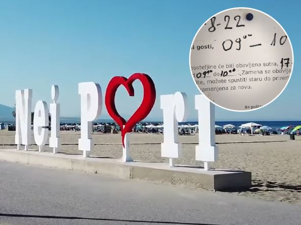Jedan turista iz Srbije na društvenim mrežama objavio je fotografiju poruke koju su im u apartmanu u Grčkoj u Nei Pori ostavili na oglansoj tabli. Kako se vidi na fotografiji koju je podelio, u pitanju je poruka gostima koji su na letovanje došli preko domaće turističke agencije, i tiče se zamene posteljine u sobama.