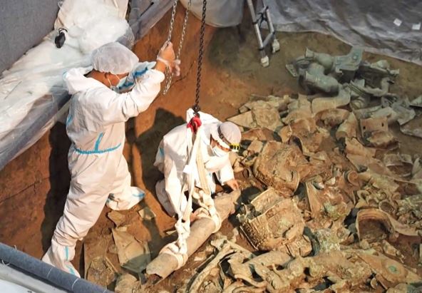 U jami broj 8 je nedavno iskopan predmet u neuobičajenom obliku zmaja sa kvadratnim, širokim i duguljastim nosom nalik na svinjski. U istoj jami je takođe otkrivena bronzana ptica sa izrezanim šupljim krilima. Neviđeni izgledi novootkrivenih predmeta prikazuju fantastičnu maštu ljudi koji su u ovom području živeli pre tri hiljade godina.