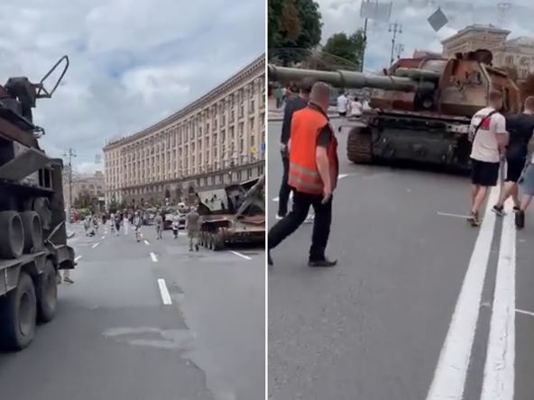 U centru ukrajinske prestonice, Kijevu, vlasti su priredile vojnu paradu uništene ruske vojne tehnike. Kako prenose tamošnji mediji ovo je urađeno kao odgovor na ruski plan da u Kijevu, pošto ga osvoje, održe vojnu paradu na Hreščatiku, glavnoj ulici u ovom gradu.