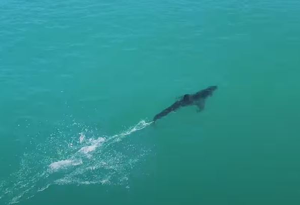 Dron je uhvatio zastrašujuću scenu i zabeležio nešto neverovatno! Na snimku se vidi velika bela ajkula koja je dostigla najveću brzinu dok je jurila prema obali.