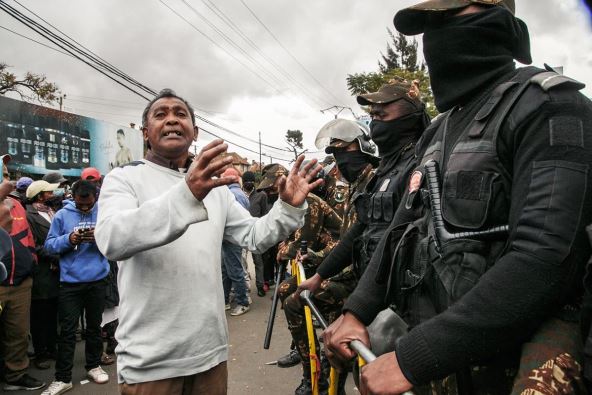 Policajac je naveo da su morali da se brane od besnih demonstranata i da nisu imali izbora. Korišćeni su i pištolji sa gumenim mecima, a onda je bila upotrebljena i bojeva municija.