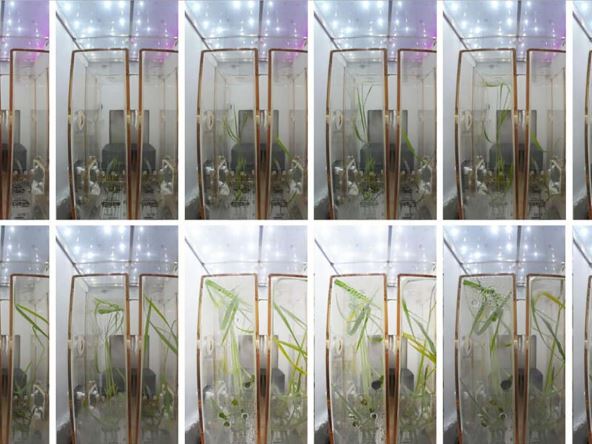 Dženg Huićijung, istraživač za molekularnu botaniku pri CAS-u, rekao je da je arabidopsis već ima četiri lista, i jedan od primeraka pirinača je već porastao za 30 centimetara.