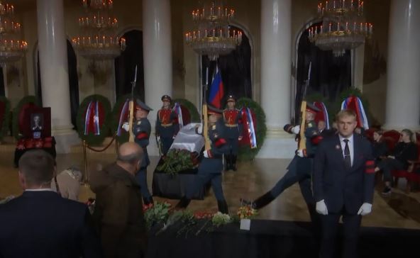 Kovčeg se nalazio u centru sale dok se čuli zvuci muzike iz filma "Šindlerova lista". Jedan od retkih stranih političara koji prisustvuje sahrani je mađarski premijer Viktor Orban. Pogledajte fotografije sa sahrane.