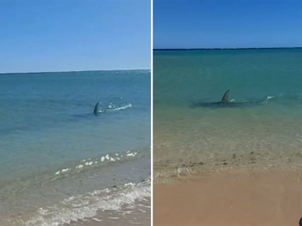 Na objavljenom snimku može se videti kako muškarac hoda do ivice vode u Zalivu ajkula. Ali za nekoliko trenutaka na istom snimku vidi se tigrasta ajkula sasvim blizu obale, u plićaku.