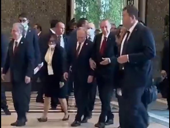 Na društvenim medijima se pojavio snimak gde su u centru pažnje ruski predsednik Vladimir Putin i turski lider Redžep Tajip Erdogan. Na snimku se vidi kako Erdogan i Putin hodaju kroz dvoranu, a Erdogan za to vreme drži Putina pod ruku.