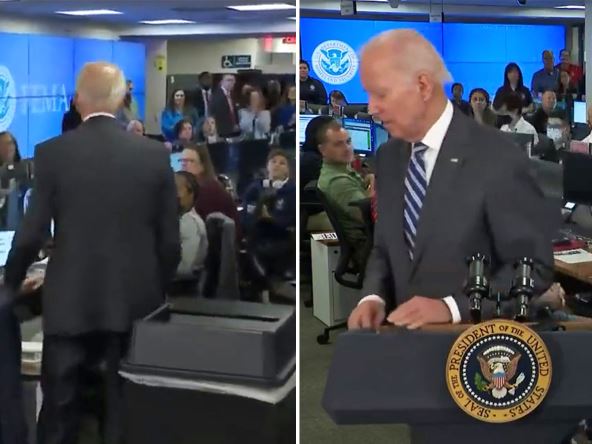 Bajden je posetio kancelariju FEMA-a, američke Savezne agencije za upravljanje hitnim situacijama, kako bi zahvalio na odgovoru zaposlenih na uragan Ijan, koji tutnji Floridom. Na kraju izlaganja okrenuo se kako bi se pozdravio sa ljudima, a to je bio povod za zbijanje novih šala na njegov račun.
