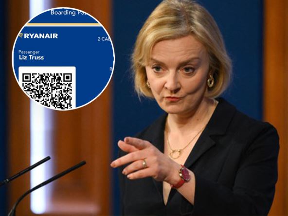 Odgovarajući na premijerkin odlazak, irska avio-kompanija Ryanair je tvitovala "bezobraznu" kartu za ukrcavanje Liz Tras. Propusnica, koja joj daje mesto 10D, je za let od londonskog Getvika u pravcu - "bilo gde" na svetu i bila je tvitovana uz emotikon koji odmahuje rukom za pozdrav. Kao odgovor, aerodrom Džon Lenon u Liverpulu je odgovorio: "Uverite se da je bespovratna karta. Znamo kakva je ona".