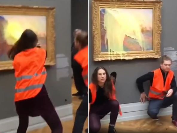 Dvoje eko aktivista u nemačkom potsdamskom muzeju bili su pire krompir na sliku Kloda Monea koja je prodata 2019. godine na aukciji za 110 miliona dolara. Oni su ušli u muzej u narandžastim fluorescentnim prslucima i bacili su pire na sliku, a nakon toga su kleknuli ispod slike radi slikanja.