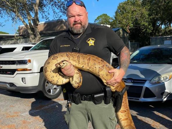 Zmija boa (zmijski car), ili udav, uhvaćena je u dvorištu jedne kuće na Floridi u Sjedinjenim Američkim Državama, prenosi "New York Post". Ona je dugačka tri metra, a teška je čak 34 kilograma. Zmiju je uhvatio lokalni načelnik policije Klej Mangrum. Oglasio se kratko za medije.