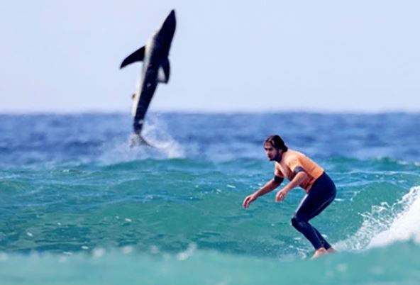 U Kaliforniji u Sjedinjenim Američkim Državama se održalo takmičenje u profesionalnom surfingu. Fotograf Džordan Anast je svojim foto aparatom uspeo da zabeleži neverovatan kadar koji je za kratko vreme postao viralan. Na slici je uhvaćen profesionalni surfer Tajler Voren, a iza njega se pojavila ajkula koja je izletela iz okeana, piše hrvatski "Večernji list".