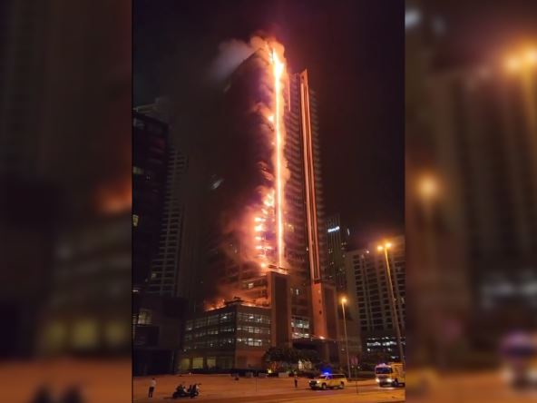 Požar je izbio u ponedeljak rano ujutro u višespratnici od 35 spratova u Dubaiju u blizini Burdž Kalife, najviše zgrade na svetu, javlja AP. Pojavili su se snimci na društvenim mrežama gde se vidi kako se plamen širi po celoj zgradi od 35 spratova. Vatra je kako javljaju lokalni mediji do zore ugašena, ali je veliki deo fasade izgoreo.