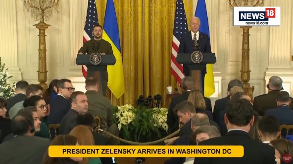 U Beloj kući u Vašingtonu u Sjedinjenim Američkim Državima je počelo zajedničko obraćanje medijimapredsednika Sjedinjenih Američkih Država Džozefa Bajdena i predsednika Ukrajine Volodimira Zelenskog. Predsednik Ukrajine Volodimir Zelenski je danas uveče stigao u Sjedinjene Američke Države i to je prvi put da je napustio domovinu otkad je počeo rat u Ukrajini 24. februara 2022. godine. Deo američke javnosti, uključujući i jednog poznatog novinara, Džeka Batlera, se ne slažu sa ovim potezom predsednika Ukrajine. Batler smatra da ovaj sastanak ne predstavlja nikakvu suštinsku korist ni za Ukrajinu, a ni za Sjedinjene Američke Države.