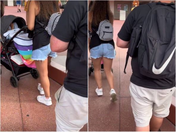 Na snimku se vidi kako porodica sa dečijim kolicima sa bebom ulazi u park Diznilend. Plaćaju kartu samo za odrasle osobe, dok za dete ne plaćaju jer se karte za decu mlađu od tri godine ne naplaćuju. Oni su ušli praveći se da je u kolicima beba, ali čim su prošli kontrolu, uzeli su dete iz kolica.