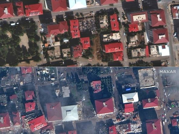 Kombinacija satelitskih snimaka koju je objavila američka kompanija za svemirsku tehnologiju Maxar Technologies prikazuje iste lokacije pre i posle zemljotresa u Turskoj. Fotografije prikazuju Islahije, grad na jugoistoku Turske koji je teško pogođen razornim zemljotresima. Prve fotografije snimljene su iz svemira 4. oktobra 2022. godine, a druge 7. februara 2023. godine, nakon snažnog zemljotresa jačine 7,8 stepeni po Rihterovoj skali, nakon čega je usledio još jedan zemljotres jačine 7,5 stepeni.