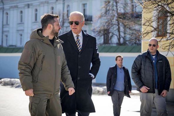 Američki predsednik Džo Bajden sastao se danas u Kijevu, tokom svoje kratke nenajavljene posete, sa šefom ukrajinske države Volodimirom Zelenskim, uoči prve godišnjice ruske invazije na Ukrajinu 24. februara.To je prva Bajdenova poseta Ukrajini od početka ruske invazije na tu zemlju, što je veliki znak podrške, ocenjuje Rojters.
