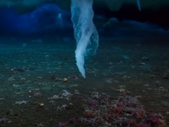 Nesvakidašnji i pomalo zastrašujući fenomen snimljen je kamerom, a zapanjujući snimak krije smrtonosnu tajnu. Ono što na prvi pogled izgleda kao neka vrsta tornada, zapravo je led zabeležen pod morem na Antarktiku.